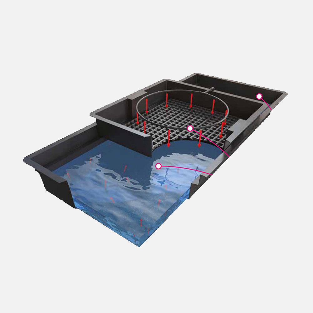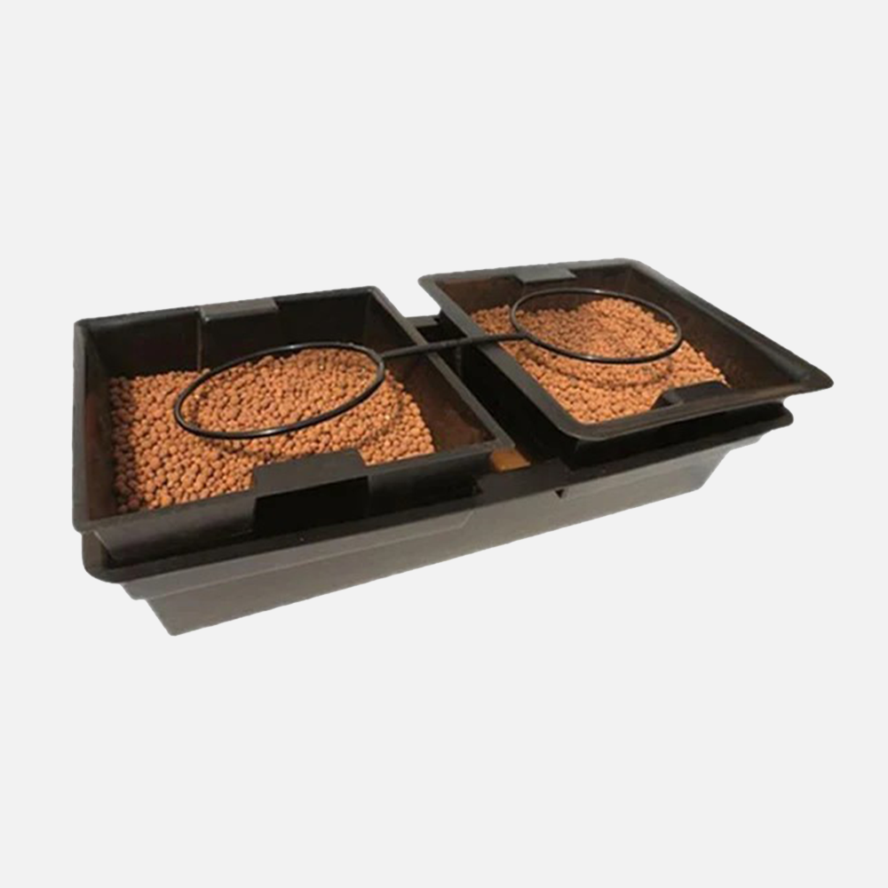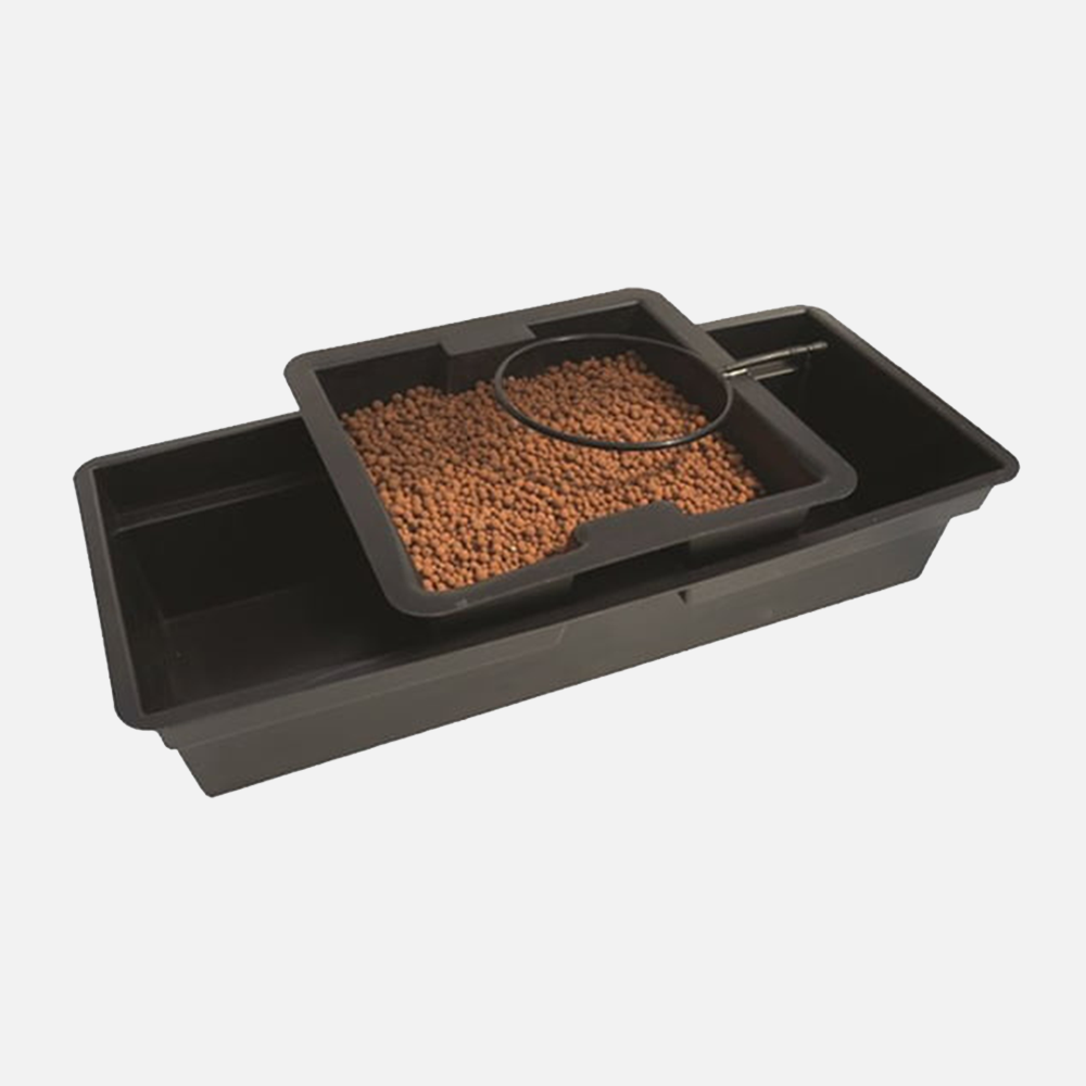 - Plants sit in the large tray, whilst the plant is fed from above via a feed ring to establish strong roots.