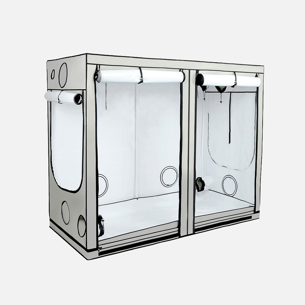The R240 can house two or even three 600-watt lamps or two 1000 watt metal halide or high pressure sodium lamps (air cooled reflectors recommend for 1000w lamps). Some growers mix and match lamp types to provide a fuller spectrum to their plants. While there are other large grow tents on the market, what sets the HOMEbox R240 apart is its PAR+ super reflective lining. Multiple high intensity grow lights generate a lot of heat so its essential that while the all important PAR energy is reflected towards the plant canopy, the radiant heat is efficiently dissipated . Growers are astounded by both the quantity and quality of their harvest from a HOMEbox ® Ambient R240. A great choice for the dedicated hobbyist or professional grower.