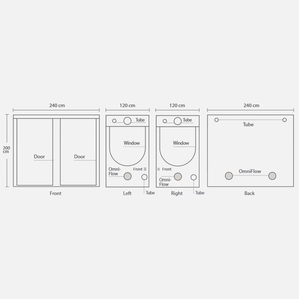 For growers lucky enough to have a little extra room to dedicate to their hobby, there’s really only one way to go: the HOMEbox ® Ambient R240. Boasting two 300mm (12”) roof inlets, parallel 250mm (10”) air-ports for independent ventilation of air cooled reflectors and four OmniFlow adjustable air vents, this truly is a powerhouse for the industrious indoor gardener.