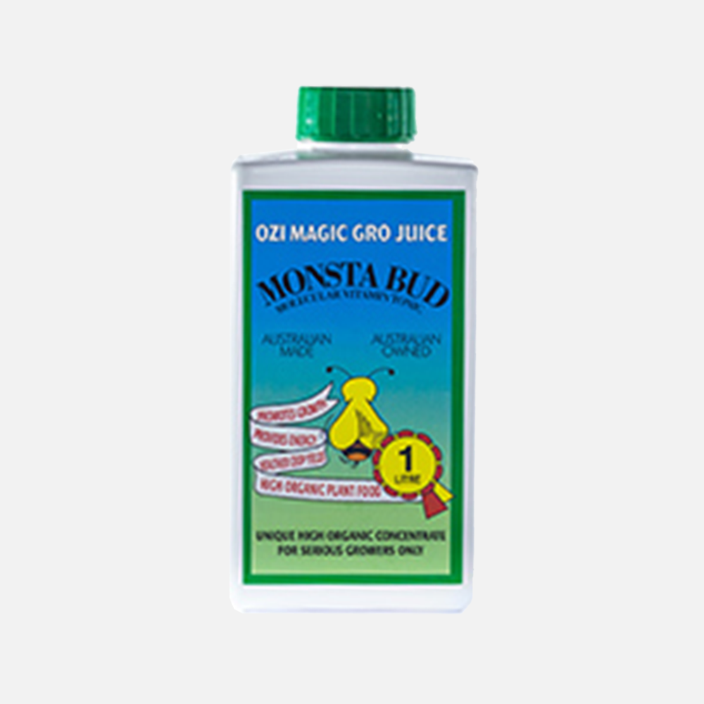 Monsta Bud is Australia’s oldest and most trusted high organic plant food and nutrient mix. Monsta Bud increases yields and boosts essential oil production. Monsta Bud is a special blend of high quality base mineral salts combined with a range of over 80 different organic compounds.